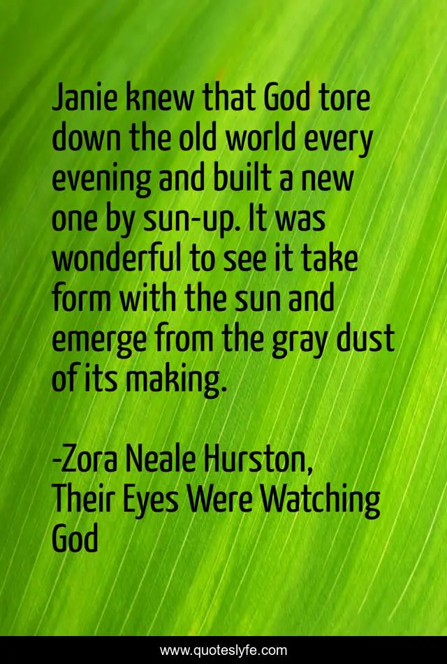 Janie knew that God tore down the old world every evening and built a new one by sun-up. It was wonderful to see it take form with the sun and emerge from the gray dust of its making.