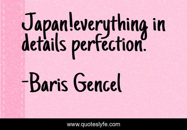This page presents the quote "Japan!everything in details perfection.". Author of this quote is Baris Gencel. This quote is about japanese, japan, details, perfection,.