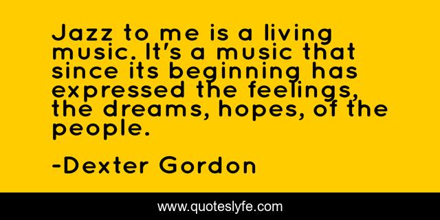 This page presents the quote "Jazz to me is a living music. It's a music that since its beginning has expressed the feelings, the dreams, hopes, of the people.". Author of this quote is Dexter Gordon. This quote is about me, music, beginning,.