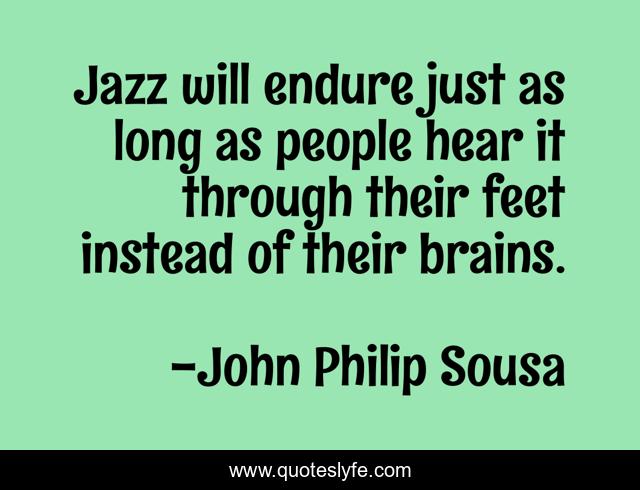 This page presents the quote "Jazz will endure just as long as people hear it through their feet instead of their brains.". Author of this quote is John Philip Sousa. .