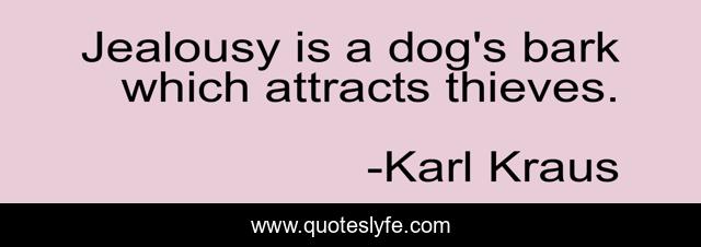This page presents the quote "Jealousy is a dog's bark which attracts thieves.". Author of this quote is Karl Kraus. This quote is about thieves, dog, which,.