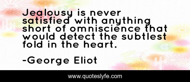 This page presents the quote "Jealousy is never satisfied with anything short of omniscience that would detect the subtlest fold in the heart.". Author of this quote is George Eliot. .
