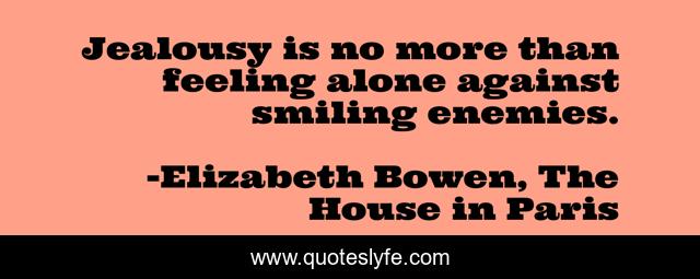 This page presents the quote "Jealousy is no more than feeling alone against smiling enemies.". Author of this quote is Elizabeth Bowen, The House in Paris. .