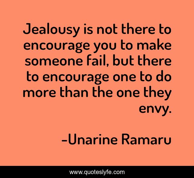 This page presents the quote "Jealousy is not there to encourage you to make someone fail, but there to encourage one to do more than the one they envy.". Author of this quote is Unarine Ramaru. This quote is about envy, success, jealousy, encouragement, failure, self-motivation,.
