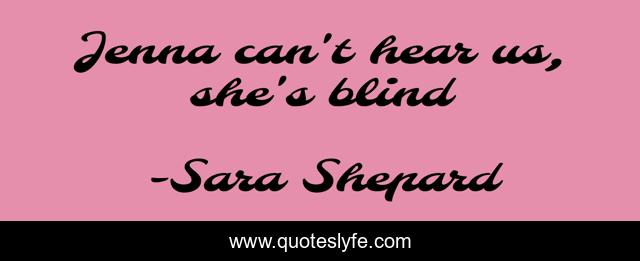 This page presents the quote "Jenna can't hear us, she's blind". Author of this quote is Sara Shepard. .
