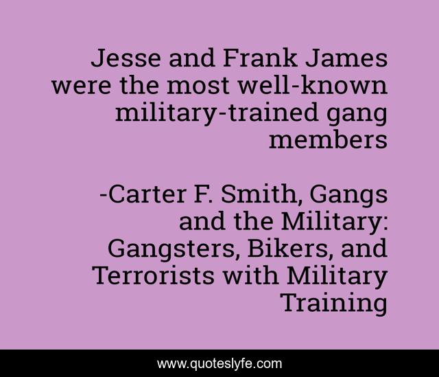 "Carter F. Smith, Gangs and the Military: Gangsters, Bikers, and Terrorists with Military Training Quotes." Quoteslyfe.com, 2025. Fri. 05 Dec. 2025. <https://www.quoteslyfe.com/quote/Jesse-and-Frank-James-were-the-most-237041>.