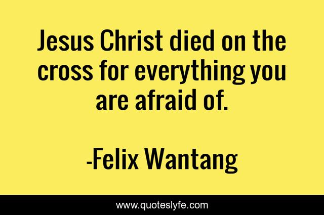 This page presents the quote "Jesus Christ died on the cross for everything you are afraid of.". Author of this quote is Felix Wantang. This quote is about bible, christ, holy, cross, jesus, fear,.