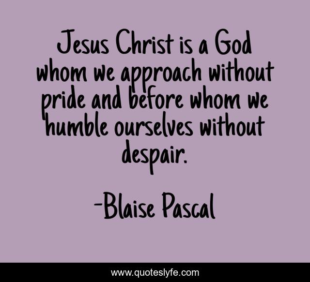 This page presents the quote "Jesus Christ is a God whom we approach without pride and before whom we humble ourselves without despair.". Author of this quote is Blaise Pascal. .