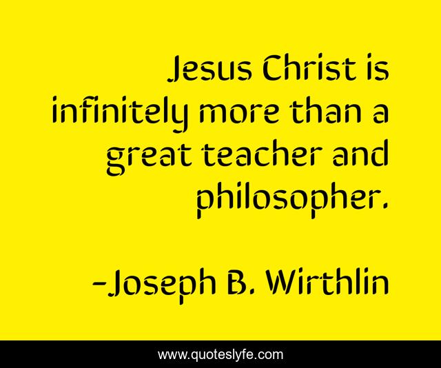 This page presents the quote "Jesus Christ is infinitely more than a great teacher and philosopher.". Author of this quote is Joseph B. Wirthlin. This quote is about great, christ,.