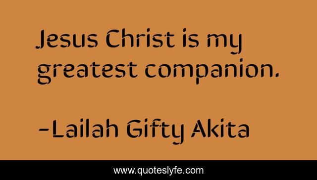 This page presents the quote "Jesus Christ is my greatest companion.". Author of this quote is Lailah Gifty Akita. This quote is about jesus-christ, spiritual, christian, positive, motivational, confidence, companion, optimistic,.