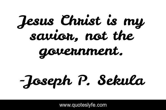 This page presents the quote "Jesus Christ is my savior, not the government.". Author of this quote is Joseph P. Sekula. This quote is about faith, governement-control, god, jesus,.