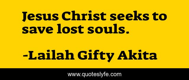 This page presents the quote "Jesus Christ seeks to save lost souls.". Author of this quote is Lailah Gifty Akita. This quote is about jesus-christ, faith, spiritual, confession, christian, mercy, repentance, sins, hope,.