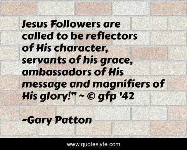 "Gary Patton Quotes." Quoteslyfe.com, 2025. Fri. 05 Dec. 2025. <https://www.quoteslyfe.com/quote/Jesus-Followers-are-called-to-be-reflectors-134781>.