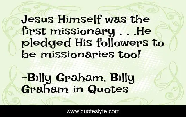 "Billy Graham, Billy Graham in Quotes Quotes." Quoteslyfe.com, 2025. Mon. 08 Dec. 2025. <https://www.quoteslyfe.com/quote/Jesus-Himself-was-the-first-missionary-He-152564>.