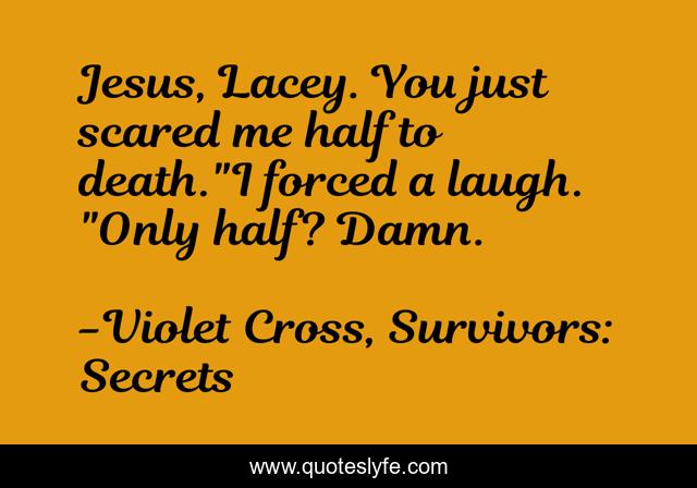 This page presents the quote "Jesus, Lacey. You just scared me half to death."I forced a laugh. "Only half? Damn.". Author of this quote is Violet Cross, Survivors: Secrets. This quote is about secrets, survivors,.