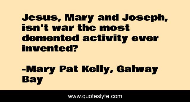 This page presents the quote "Jesus, Mary and Joseph, isn't war the most demented activity ever invented?". Author of this quote is Mary Pat Kelly, Galway Bay. .
