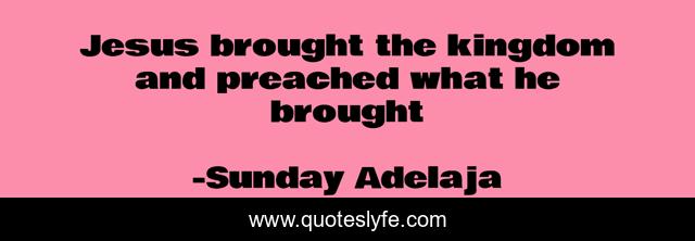 This page presents the quote "Jesus brought the kingdom and preached what he brought". Author of this quote is Sunday Adelaja. This quote is about kingdom, preached,.