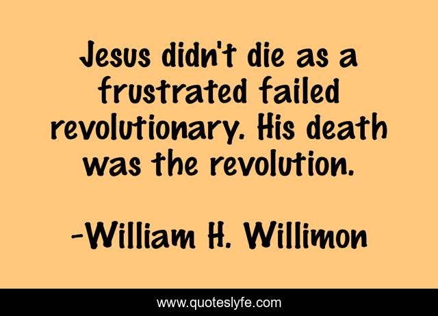 This page presents the quote "Jesus didn't die as a frustrated failed revolutionary. His death was the revolution.". Author of this quote is William H. Willimon. This quote is about jesus-christ, revolution, cross,.