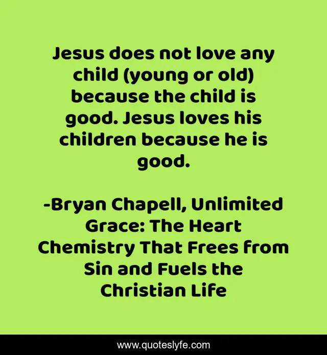 "Bryan Chapell, Unlimited Grace: The Heart Chemistry That Frees from Sin and Fuels the Christian Life Quotes." Quoteslyfe.com, 2025. Sun. 07 Dec. 2025. <https://www.quoteslyfe.com/quote/Jesus-does-not-love-any-child-young-153176>.