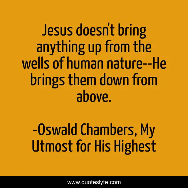 This page presents the quote "Jesus doesn't bring anything up from the wells of human nature--He brings them down from above.". Author of this quote is Oswald Chambers, My Utmost for His Highest. .