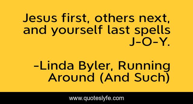 "Linda Byler, Running Around (And Such) Quotes." Quoteslyfe.com, 2025. Fri. 05 Dec. 2025. <https://www.quoteslyfe.com/quote/Jesus-first-others-next-and-yourself-last-208977>.
