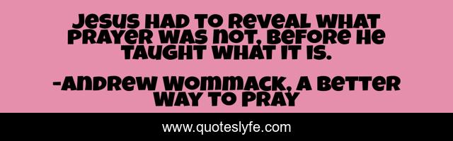 This page presents the quote "Jesus had to reveal what prayer was not, before He taught what it is.". Author of this quote is Andrew Wommack, A Better Way to Pray. This quote is about faith, jesus, prayer,.