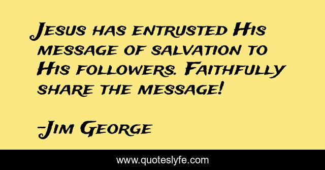 This page presents the quote "Jesus has entrusted His message of salvation to His followers. Faithfully share the message!". Author of this quote is Jim George. This quote is about bible, christian, faithful, share, jesus, faithfully, followers, word, message,.