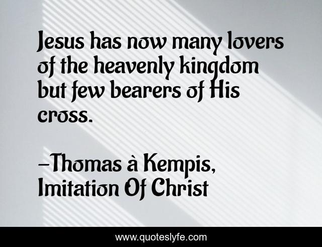 This page presents the quote "Jesus has now many lovers of the heavenly kingdom but few bearers of His cross.". Author of this quote is Thomas à Kempis, Imitation Of Christ. This quote is about enthusiasm, inspirational,.
