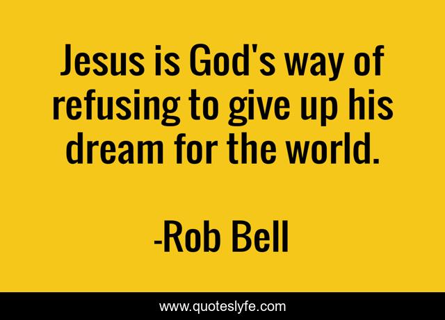 This page presents the quote "Jesus is God's way of refusing to give up his dream for the world.". Author of this quote is Rob Bell. This quote is about god, restoration, redemption, jesus,.