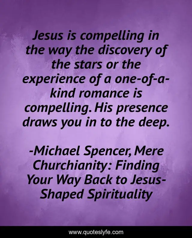 "Michael Spencer, Mere Churchianity: Finding Your Way Back to Jesus-Shaped Spirituality Quotes." Quoteslyfe.com, 2025. Sun. 07 Dec. 2025. <https://www.quoteslyfe.com/quote/Jesus-is-compelling-in-the-way-the-44109>.