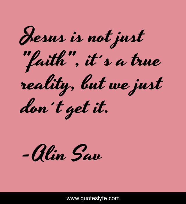 This page presents the quote "Jesus is not just "faith", it´s a true reality, but we just don´t get it.". Author of this quote is Alin Sav. .