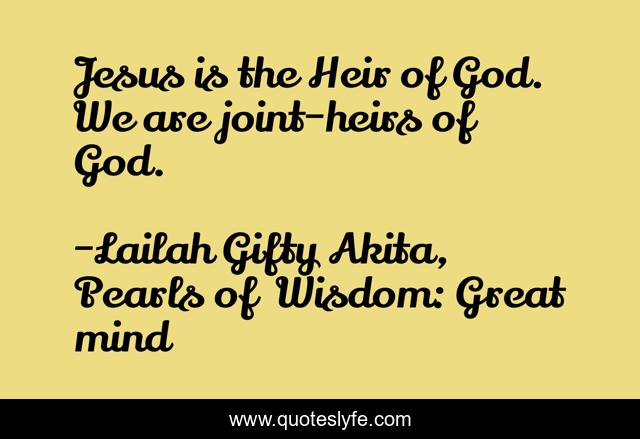"Lailah Gifty Akita, Pearls of Wisdom: Great mind Quotes." Quoteslyfe.com, 2025. Fri. 05 Dec. 2025. <https://www.quoteslyfe.com/quote/Jesus-is-the-Heir-of-God-We-85578>.