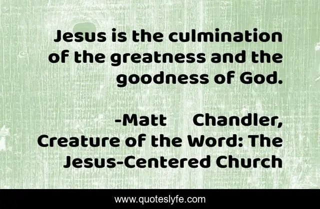 "Matt Chandler, Creature of the Word: The Jesus-Centered Church Quotes." Quoteslyfe.com, 2025. Fri. 05 Dec. 2025. <https://www.quoteslyfe.com/quote/Jesus-is-the-culmination-of-the-greatness-206290>.