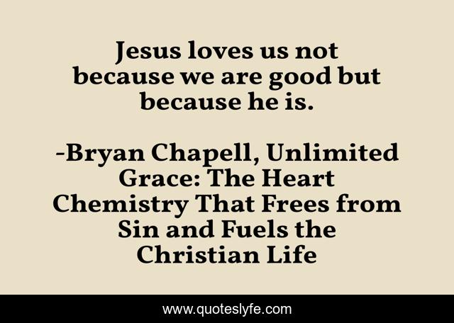 "Bryan Chapell, Unlimited Grace: The Heart Chemistry That Frees from Sin and Fuels the Christian Life Quotes." Quoteslyfe.com, 2025. Fri. 05 Dec. 2025. <https://www.quoteslyfe.com/quote/Jesus-loves-us-not-because-we-are-134325>.