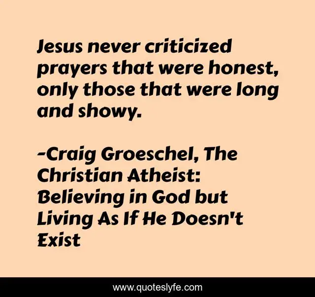 "Craig Groeschel, The Christian Atheist: Believing in God but Living As If He Doesn't Exist Quotes." Quoteslyfe.com, 2025. Fri. 05 Dec. 2025. <https://www.quoteslyfe.com/quote/Jesus-never-criticized-prayers-that-were-honest-114957>.