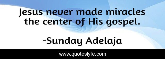This page presents the quote "Jesus never made miracles the center of His gospel.". Author of this quote is Sunday Adelaja. This quote is about miracles, gospel, jesus,.