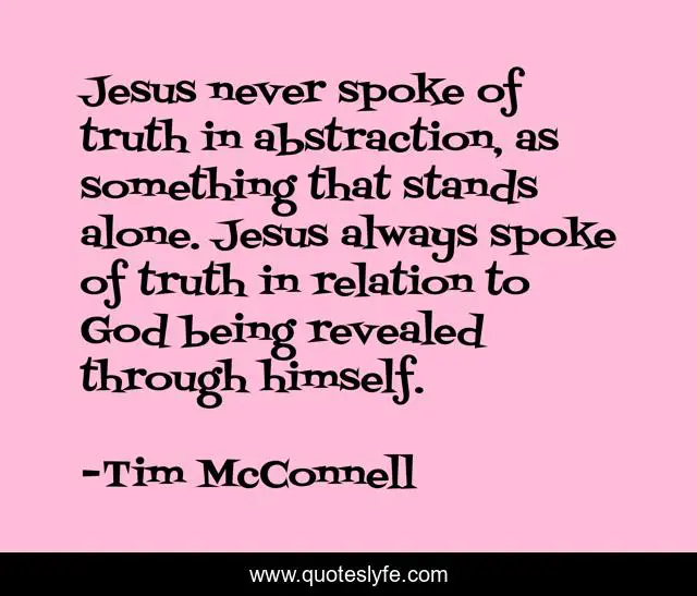 "Tim McConnell Quotes." Quoteslyfe.com, 2025. Fri. 05 Dec. 2025. <https://www.quoteslyfe.com/quote/Jesus-never-spoke-of-truth-in-abstraction-201772>.