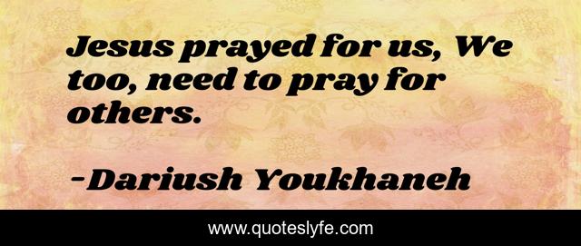 This page presents the quote "Jesus prayed for us, We too, need to pray for others.". Author of this quote is Dariush Youkhaneh. This quote is about praying-for-others, jesus,.