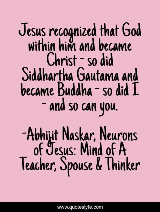 "Abhijit Naskar, Neurons of Jesus: Mind of A Teacher, Spouse & Thinker Quotes." Quoteslyfe.com, 2025. Fri. 05 Dec. 2025. <https://www.quoteslyfe.com/quote/Jesus-recognized-that-God-within-him-and-123923>.