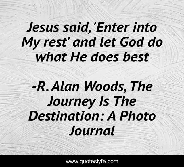 "R. Alan Woods, The Journey Is The Destination: A Photo Journal Quotes." Quoteslyfe.com, 2025. Fri. 05 Dec. 2025. <https://www.quoteslyfe.com/quote/Jesus-said-Enter-into-My-rest-and-11309>.