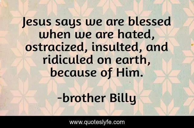This page presents the quote "Jesus says we are blessed when we are hated, ostracized, insulted, and ridiculed on earth, because of Him.". Author of this quote is brother Billy. This quote is about sackcloth-and-ashes-tribulation, suffering,.