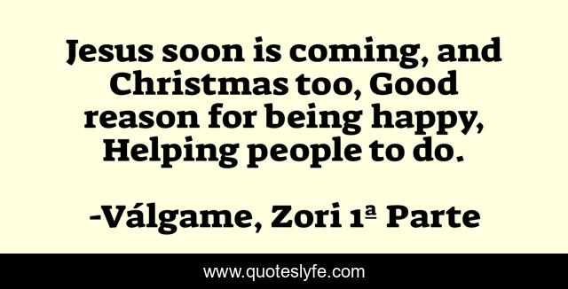 This page presents the quote "Jesus soon is coming, and Christmas too, Good reason for being happy, Helping people to do.". Author of this quote is Válgame, Zori 1ª Parte. This quote is about helping-others, christmas, jesus,.