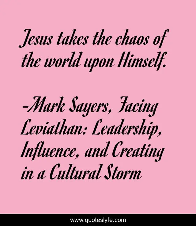 "Mark Sayers, Facing Leviathan: Leadership, Influence, and Creating in a Cultural Storm Quotes." Quoteslyfe.com, 2025. Sat. 06 Dec. 2025. <https://www.quoteslyfe.com/quote/Jesus-takes-the-chaos-of-the-world-196355>.