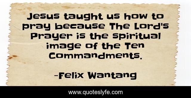 This page presents the quote "Jesus taught us how to pray because The Lord's Prayer is the spiritual image of the Ten Commandments.". Author of this quote is Felix Wantang. This quote is about wantang, heaven, ten, god, felix, commandments, jesus, prayer,.