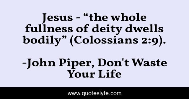 "John Piper, Don't Waste Your Life Quotes." Quoteslyfe.com, 2025. Mon. 08 Dec. 2025. <https://www.quoteslyfe.com/quote/Jesus-the-whole-fullness-of-deity-dwells-134309>.