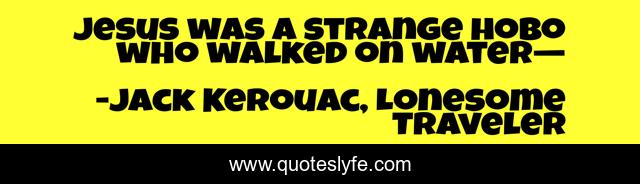 "Jack Kerouac, Lonesome Traveler Quotes." Quoteslyfe.com, 2025. Fri. 05 Dec. 2025. <https://www.quoteslyfe.com/quote/Jesus-was-a-strange-hobo-who-walked-134298>.