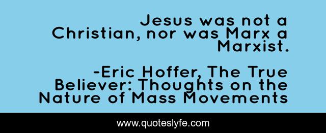 "Eric Hoffer, The True Believer: Thoughts on the Nature of Mass Movements Quotes." Quoteslyfe.com, 2025. Sun. 07 Dec. 2025. <https://www.quoteslyfe.com/quote/Jesus-was-not-a-Christian-nor-was-134810>.