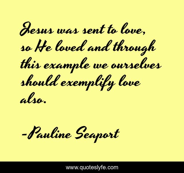 This page presents the quote "Jesus was sent to love, so He loved and through this example we ourselves should exemplify love also.". Author of this quote is Pauline Seaport. This quote is about gods-love, influence, inspiration,.