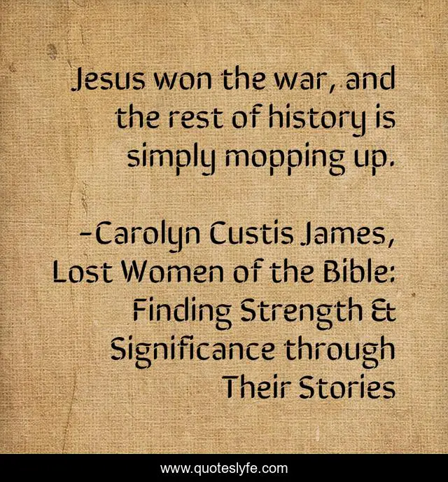 "Carolyn Custis James, Lost Women of the Bible: Finding Strength & Significance through Their Stories Quotes." Quoteslyfe.com, 2025. Mon. 08 Dec. 2025. <https://www.quoteslyfe.com/quote/Jesus-won-the-war-and-the-rest-61931>.