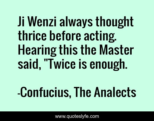 This page presents the quote "Ji Wenzi always thought thrice before acting. Hearing this the Master said, "Twice is enough.". Author of this quote is Confucius, The Analects. This quote is about action, flow,.